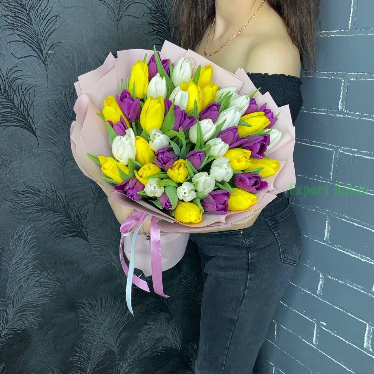 Состав: Тюльпаны - 45 шт. Упаковка дизайнерская.